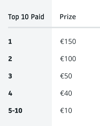 Each day, we’ll be giving away a total of €500, split into two separate prize pools.